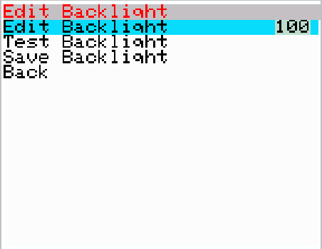 Backlight can be edited (the value is between 0-100%). You can test the value using the "Test Backlight" option.