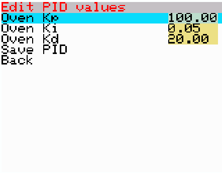 This option will show the results of last reflow/PID autotune session. It will wait untill you press the button to exit.