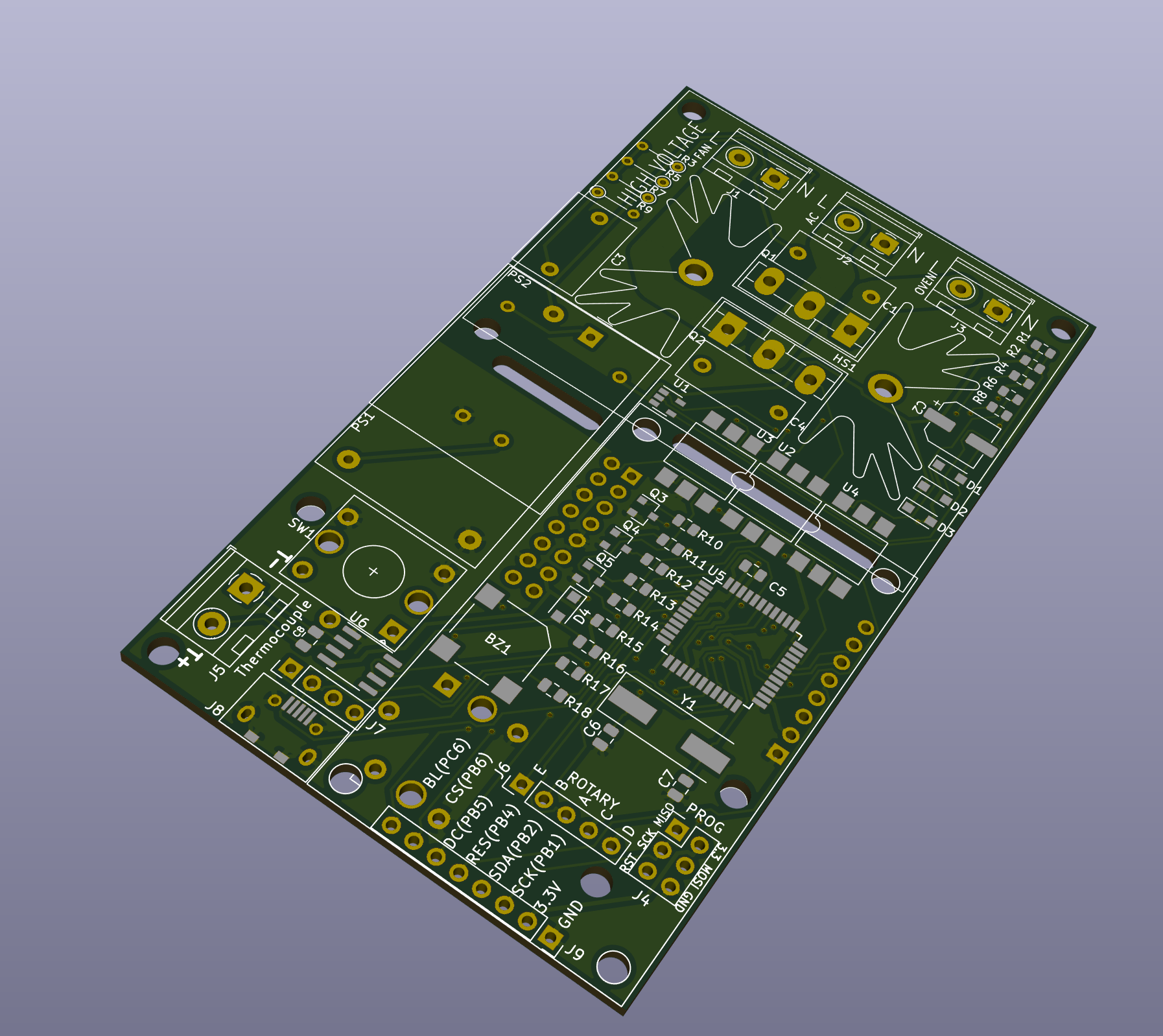 I decided to use an AC-DC isolated power supply to step down the mains voltage to a safe level (3.3V) for the low side of the board. Transformer-less designs for powering MCUs from the mains do exist and are cheaper to build but they are not as safe.
