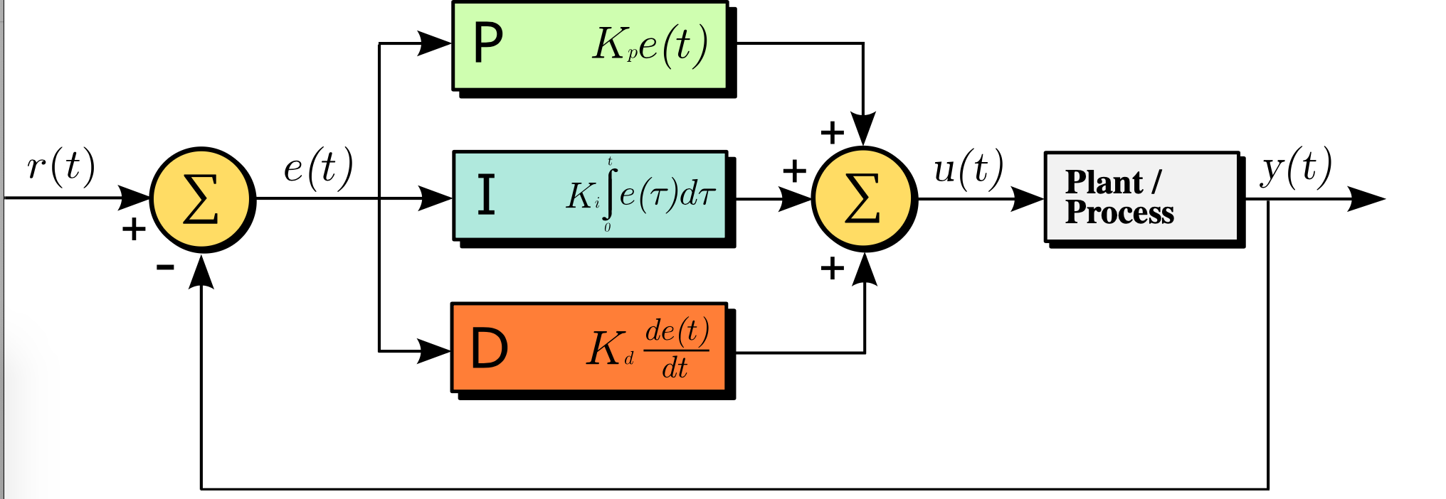 PID stands for “Proportional, Integral and Derivative.” Together, these three terms describe the basic elements of a PID controller. A PID controller is a type of control loop feedback system that calculates the difference between a measured input variable and a desired set point and attempts to minimize the error (how far are we away from set point) by adjusting the systems output.