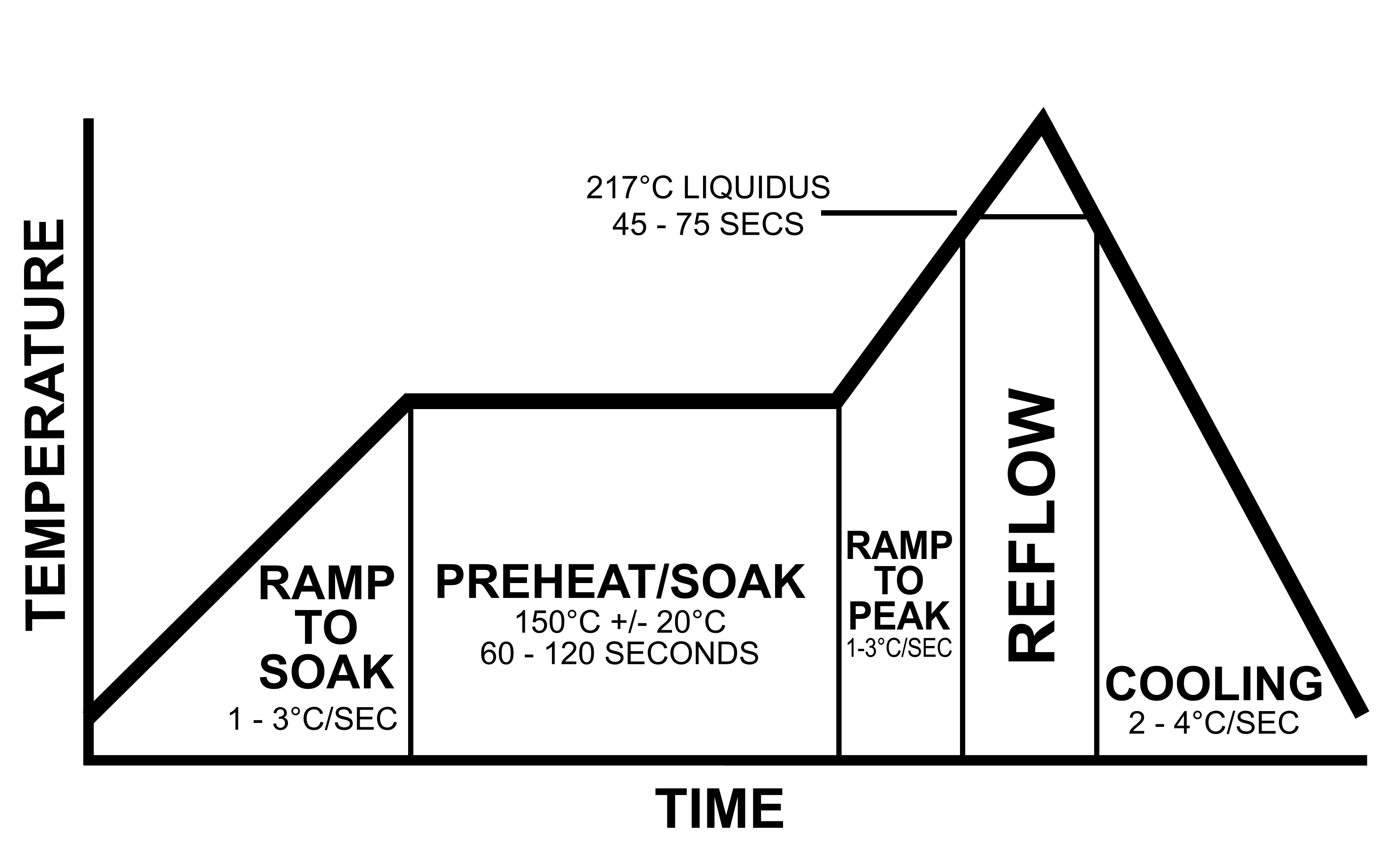 The below figure shows a typical temperature vs. time curve for the reflow process:
