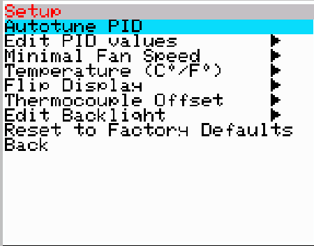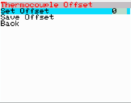 This option enables you to calibrate thermocouple offset. You can check the temperature using boiling water, or any other precise temperature source.