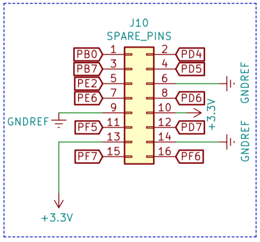 As you can see from the schematic I’ve selected an external crystal with 20pF load capacitors for the system clock source even though the ATmega32U4 has an internal oscillator that can run at 8MHz.